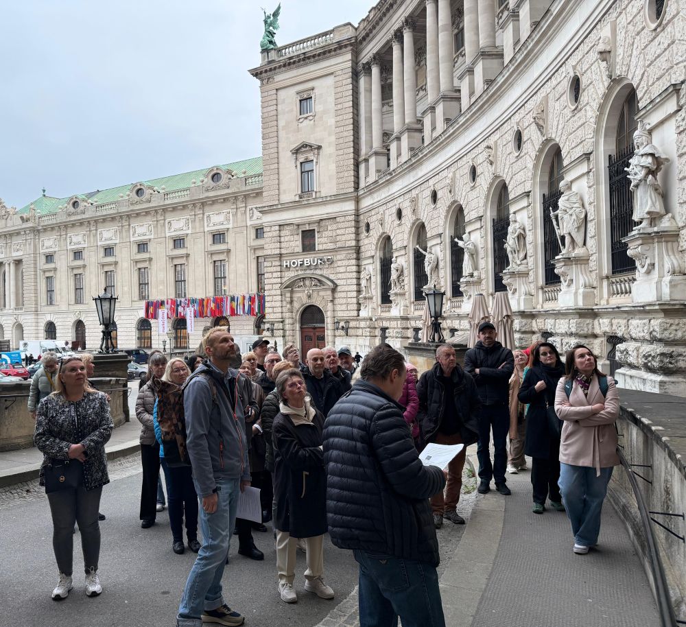 Uczestnicy wydarzenia mieli także okazję poznać historię pozostałych 19 figur zdobiących fasadę. Sławomir Iwanowski szczegółowo wyjaśnił symbolikę wszystkich postaci umieszczonych na gmachu Austriackiej Biblioteki Narodowej. Wśród nich znalazła się m.in. postać żołnierza Jana III Sobieskiego, przypominająca o polskim udziale w Odsieczy Wiedeńskiej w 1683 roku. Spacer historyczny poprowadził zebranych przez stulecia – od rzymskich legionistów po tyrolskich powstańców – ukazując, jak często przeplatają się losy Polski i Austrii.