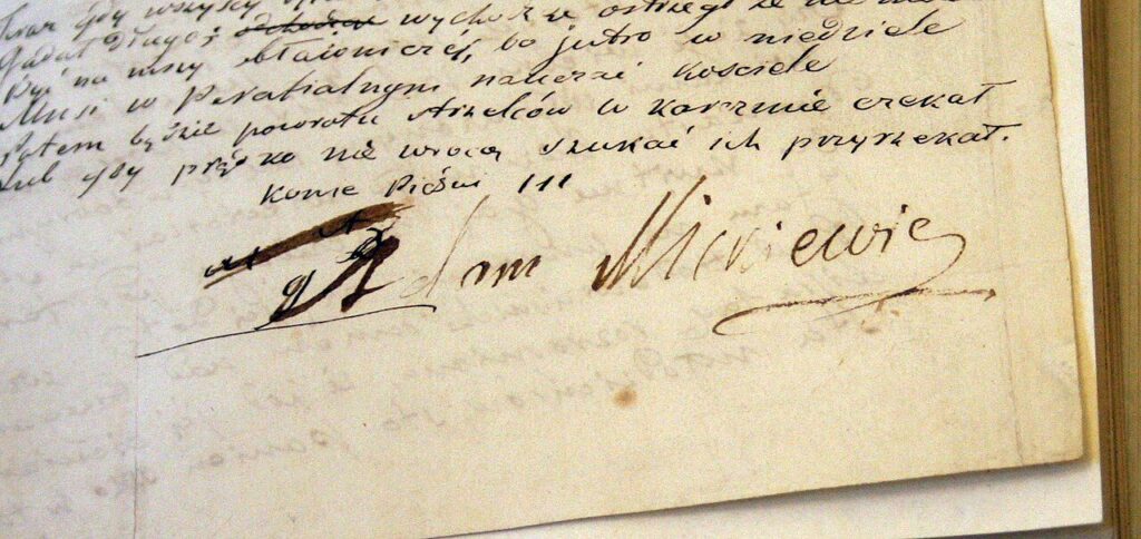 Rękopis „Pana Tadeusza“ w zbiorach Zakładu Narodowego im. Ossolińskich we Wrocławiu. Podpis Adama Mickiewicza. Fot. Pleple2000/Creative Commons 4.0